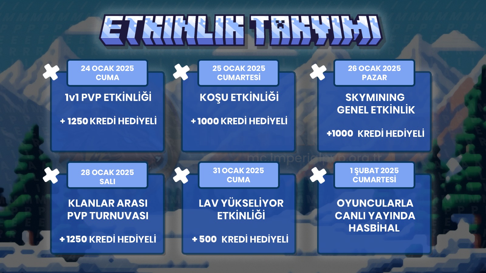• Başlangıçta nether kapalı olacak. 27 Ocakta aktif olacak.YENİ SEZONDA YAPILACAK YENİLİKLER;• BoxPvP'de olan klan sistemi eklenecek,• Ekonomi dengelenecek,• Elmas zırhtaki kırılmazlık büyüsü kaldırılıp doğrudan kırılmaz yapılacak,• Özel kılıçları el...