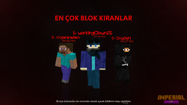 Mart ayı çok kıranları belirlendi!> #1 workingClown25 - 523.020 Blok **50₺ İninal/ Papara/ Havale**> #2 xxgaripadam - 486.956 Blok **30 Site Kredisi**> #3 OxyGeN - 206.327 Blok **1x Site Kasası Anahtarı**(sıralamadaki ilk ü...