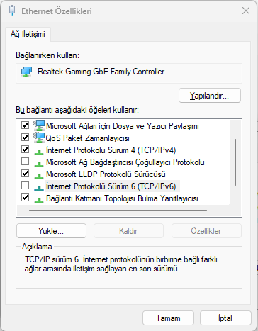 Tüm bunlardan önce aşağıdaki IPV6 ayarını devre dışı bırakmayı deneyebilirsiniz.