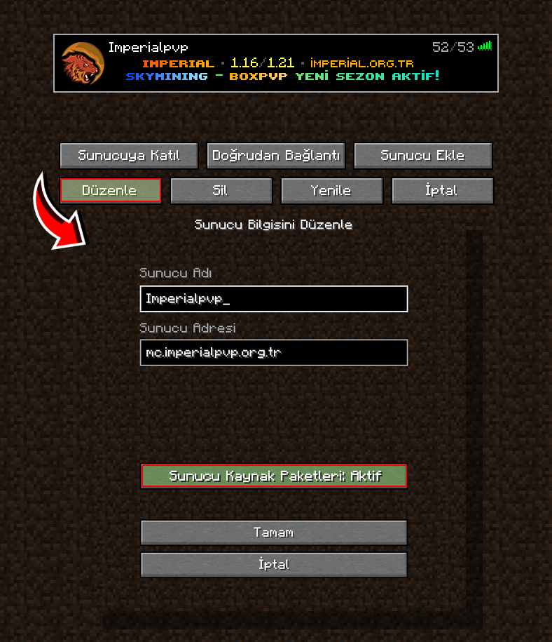 Sunucunun üzerine bir defa sol tıklayıp aşağıdan düzenle seçeneğine basın. Ardından Sunucu Kaynak Paketleri seçeneğini Aktif olacak şekilde ayarlayın.